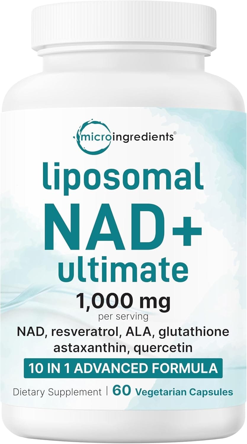 Micro Ingredients offers a 10-in-1 Liposomal NAD+ Ultimate formula with a broad-spectrum antioxidant complex for advanced cellular support. Delivers a 1,000mg combined dose per serving to promote anti-aging and daily vitality.