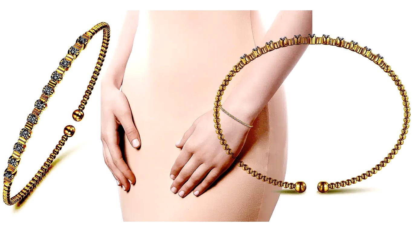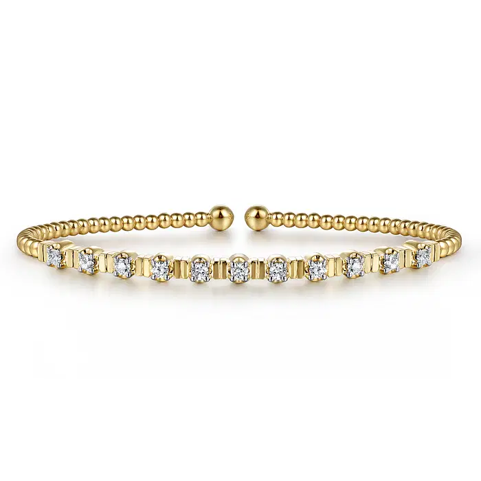 About This Item – 14K Yellow Gold Bujukan Bead Cuff Bracelet with Diamond Stations