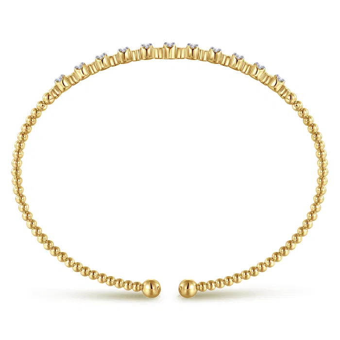 Specification: 14K Yellow Gold Bujukan Bead Cuff Bracelet with Diamond Stations