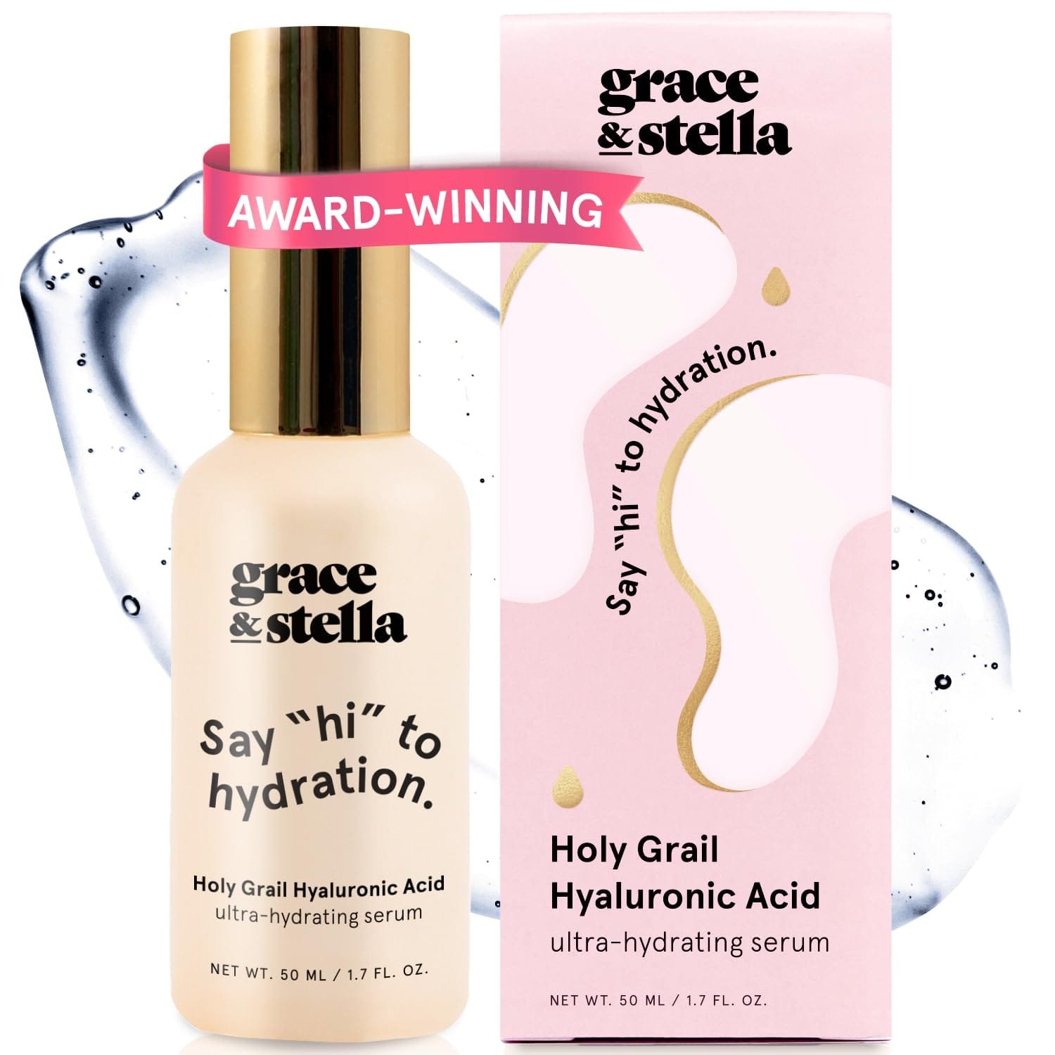 grace & stella Award Winning Hyaluronic Acid Serum (50ml/1.7 fl oz) Hydrating Hyaluronic Acid Serum for Face – Acido Hialuronico for Women – Remove Fine Lines, Wrinkles, Anti Aging – Vegan Skincare Hyaluronic Acid Serum – 50ml Pump (Travel Size)