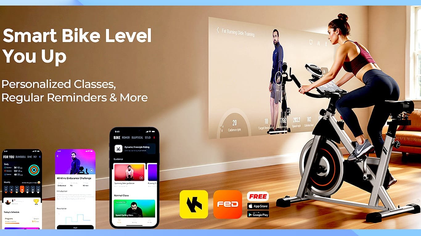 - Smart App Support: The LCD display on the exercise bike for home tracks ride data. The tablet holder allows you to enjoy music while riding. New Bluetooth support for Smart APP, and exclusive APP FED fitness You can experience the fun of different riding scenarios and cycling competitions!